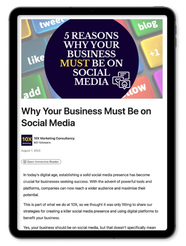 Barton Legal16 June 2025Trustindex verifies that the original source of the review is Google. 10X have been looking after our marketing for over 4 years and we are extremely happy with the service they provide. Talisa and the team are very proactive, adaptable and responsive and are always ON-IT when it comes to our social media content, marketing our webinars and events, website updates and their creative new marketing initiatives. There is no doubt that our ongoing collaboration has boosted client engagement and strengthened our brand. The team are truly invested in our success. We highly recommend 10X to any business looking for a first-class marketing service. Darren Artley9 June 2025Trustindex verifies that the original source of the review is Google. Working with 10X Marketing has been a game-changer for Trust Education. From the outset, their team demonstrated a deep understanding of our brand, mission, and goals. They didn’t just promote our services—they told our story in a compelling and strategic way that truly resonated with our audience. 10X have consistently delivered above expectations. We particularly appreciated their proactive communication, transparent reporting, and constant optimisation efforts. Thanks to their efforts, we’ve seen a noticeable increase in engagement, and overall brand visibility. It’s clear that 10X Marketing isn’t just a marketing business, they're an extension of our business and committed to our success. We would highly recommend Talisa, Eleanor and the team at 10X to anyone looking to elevate their marketing. Danielle Robinson24 April 2025Trustindex verifies that the original source of the review is Google. I recently had the pleasure of working with 10x for a video content filming session for my business, and I couldn't be more thrilled with the results. From start to finish, the entire experience was seamless and professional. They took the time to understand my vision and objectives for the video, offering valuable insights and suggestions that truly enhanced the overall concept. Their creativity and attention to detail were evident as they set up the shoot, ensuring that every aspect was perfect. During the filming, the crew was friendly and approachable, making the process enjoyable for everyone involved. They guided us through the shoot with ease, helping us feel comfortable in front of the camera. All of the team at Prosecure can’t wait to see the results ! Jamie Wilkins24 February 2025Trustindex verifies that the original source of the review is Google. The 10x team have worked with me over the past couple of years demonstrating fantastic consistency, reliability and a wealth of experience when managing our social media channels. Highly recommended. Rebecca Jackson18 February 2025Trustindex verifies that the original source of the review is Google. We’ve had the pleasure of working with 10X Marketing for the past year, and the experience has been nothing short of exceptional. From the start, Talisa and her team have been professional, creative, and incredibly responsive to our needs. They have gone above and beyond to truly understand our company and target audience. We’ve seen a measurable improvement in engagement and brand awareness, thanks to their expertise. What really sets them apart is their dedication to our success—they’re always available, open to feedback, and quick to adapt. It's clear that they genuinely care about helping us shine on social media. We highly recommend 10X Marketing to any companies looking to take their social media channels to the next level! Thank you, Talisa & team for all the hard work you have provided us with over the last year. We’re looking forward to what the next year holds😊 George Lewis14 November 2024Trustindex verifies that the original source of the review is Google. I have worked with 10X for almost 18 months. They take a great deal of weight off of my shoulders when it comes to marketing ideas, concepts, and produce content that really strikes a chord with my target audience. Talisa and Sasha in particular, have been absolutely incredible; they're readily available to bounce ideas off, and have a great understanding of my industry. I look forward to growing my business further, alongside 10X Marketing! Global Windows3 June 2024Trustindex verifies that the original source of the review is Google. ⭐⭐⭐⭐⭐ Talisa, Eleanor, and the whole team at 10X Marketing do a fantastic job! The graphics they create for social media are very professional, and nothing is too much trouble for them. I would certainly recommend 10X Marketing for their services. Tony17 November 2022Trustindex verifies that the original source of the review is Google. 10x have acted as our 'marketing consultant' for just over 18 months. After our marketing manager left we needed to recruit a marketing professional to replace them. Whilst we advertised for this role we instructed Talisa and the team at 10x to cover our entire marketing activities. The responsiveness and quality of output was such that we decided to stop our search for staff and engage 10x on a permanent basis. 10x are now imbedded in our plans and the company's management and staff could not be happier with the results. We cannot recommend Talisa and her company highly enough. Zoe Priselac13 September 2021Trustindex verifies that the original source of the review is Google. I have used 10 x marketing for marketing content and blog writing. I have been extremely impressed with their client service, clear understanding of us as a business and what we were wanting to achieve and the blog writing was excellent. It read incredibly well, in the right tone and they consistently brought traffic to the website. I have worked with both Talisa and Sophie and found them to be professional, friendly and absolutely great at what they do. Charly Melia18 June 2021Trustindex verifies that the original source of the review is Google. I've been working